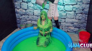 Odette gets trashed in a tub of green slime.
